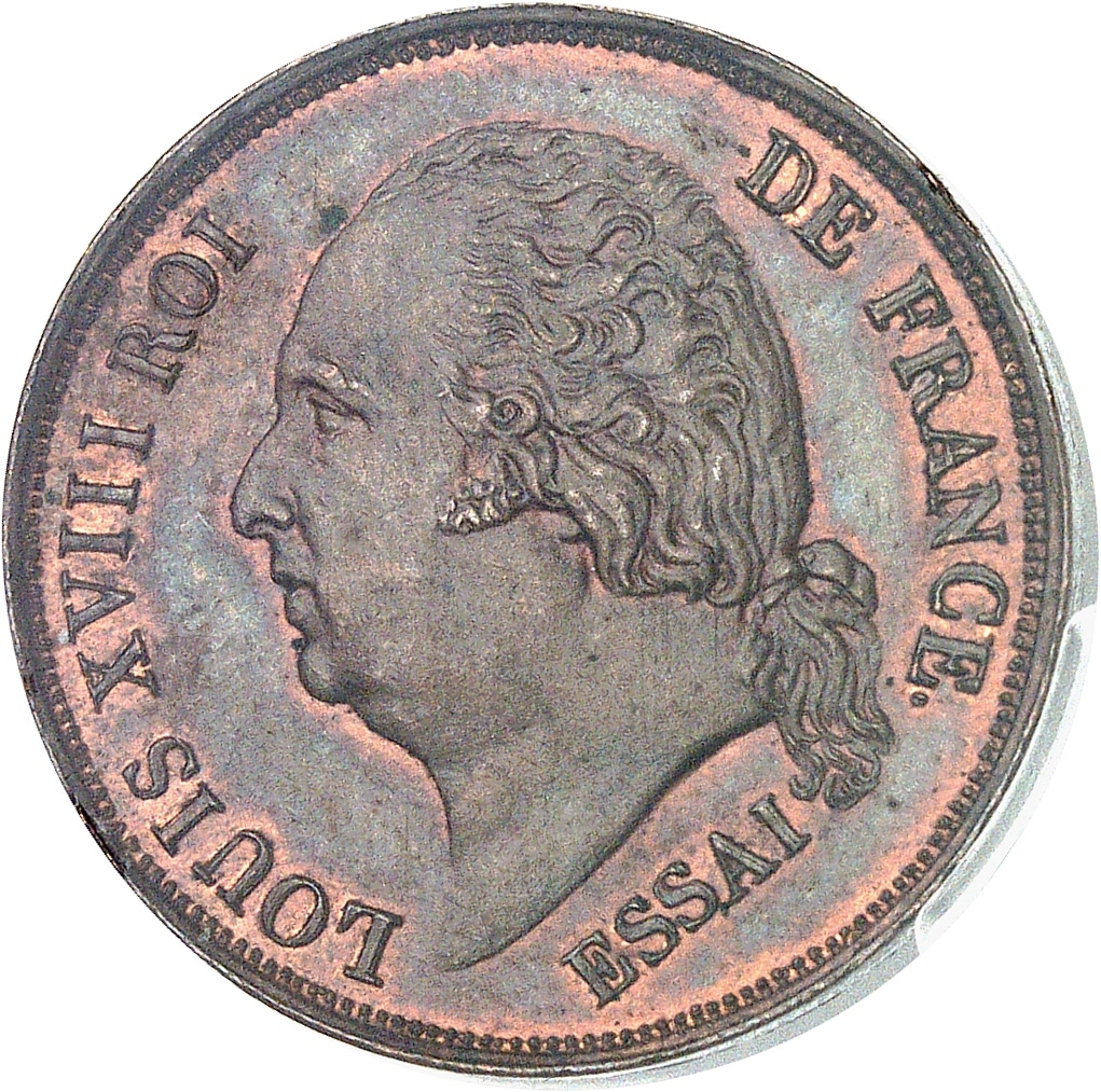Av. LOUIS XVIII ROI - DE FRANCE. Buste tête nue à gauche de Louis XVIII ; au-dessous ESSAI.