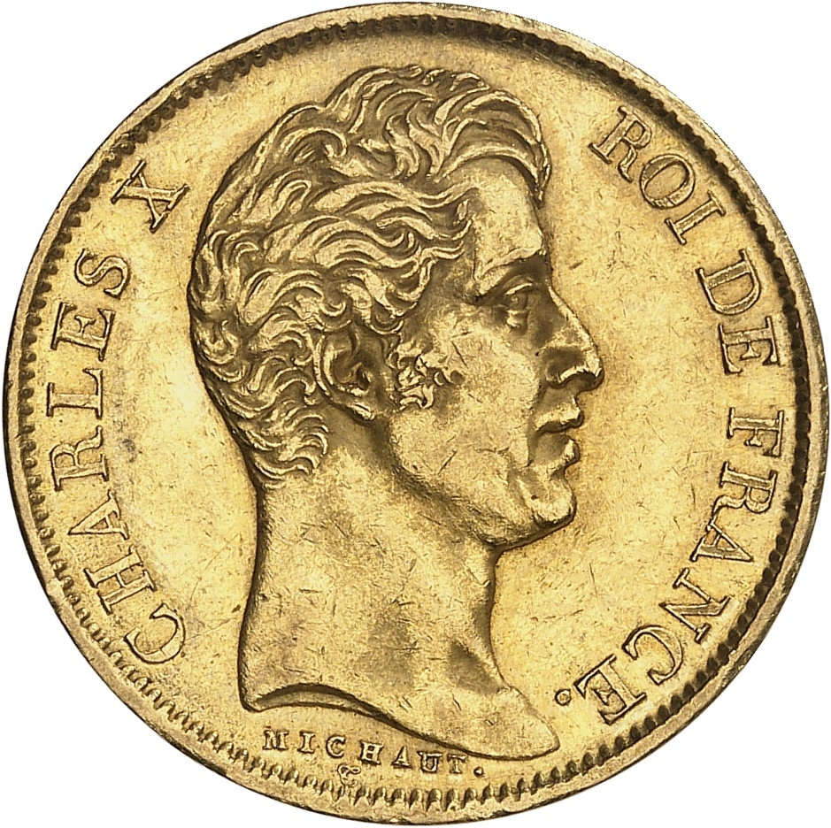 Av. CHARLES X ROI DE FRANCE. Tête nue à droite, au-dessous signature MICHAUT et T cursif.