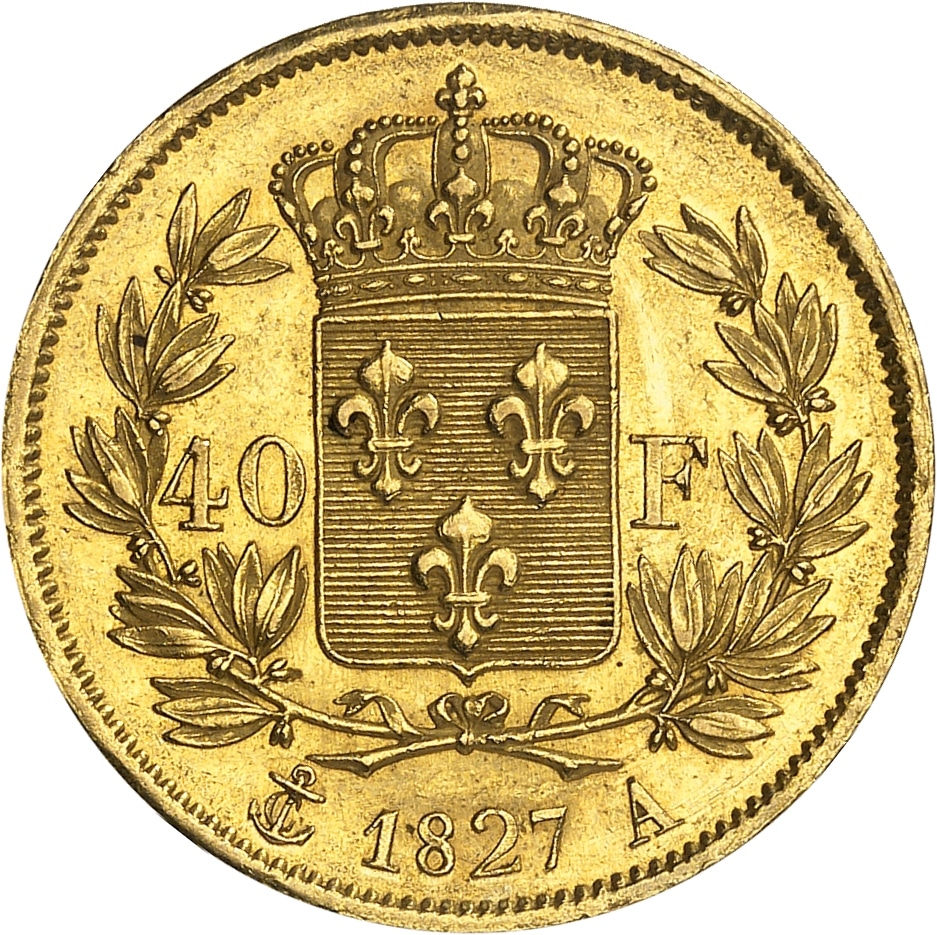 - Charles X (1824-1830). 40 Francs, 2e type 1827, A, Paris.