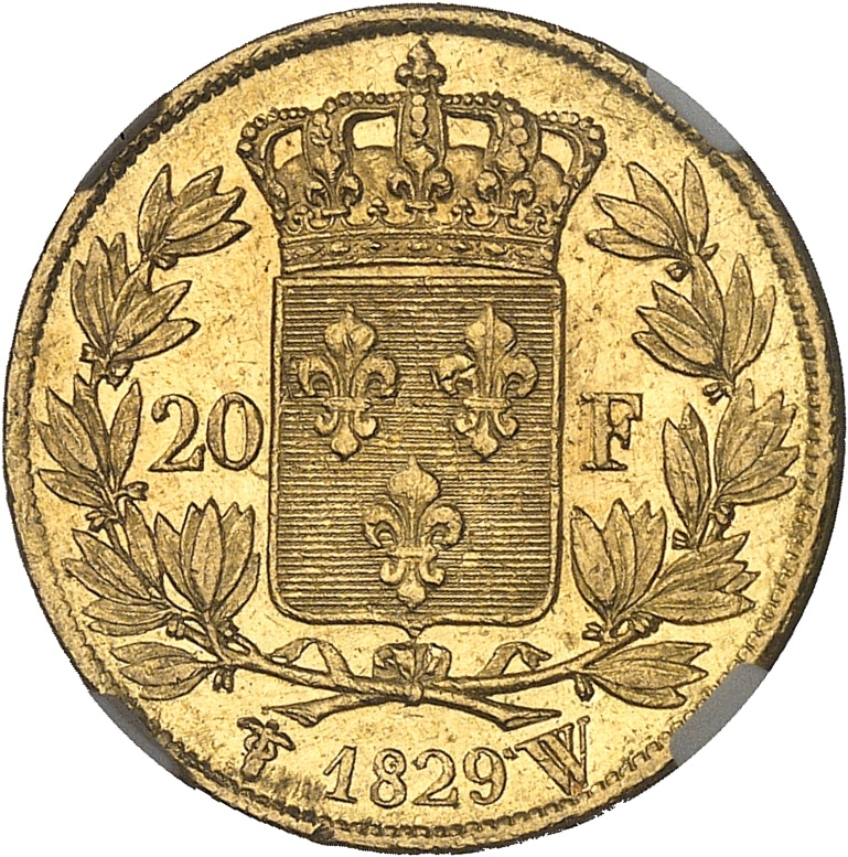 - Charles X (1824-1830). 20 francs 1829, W, Lille.