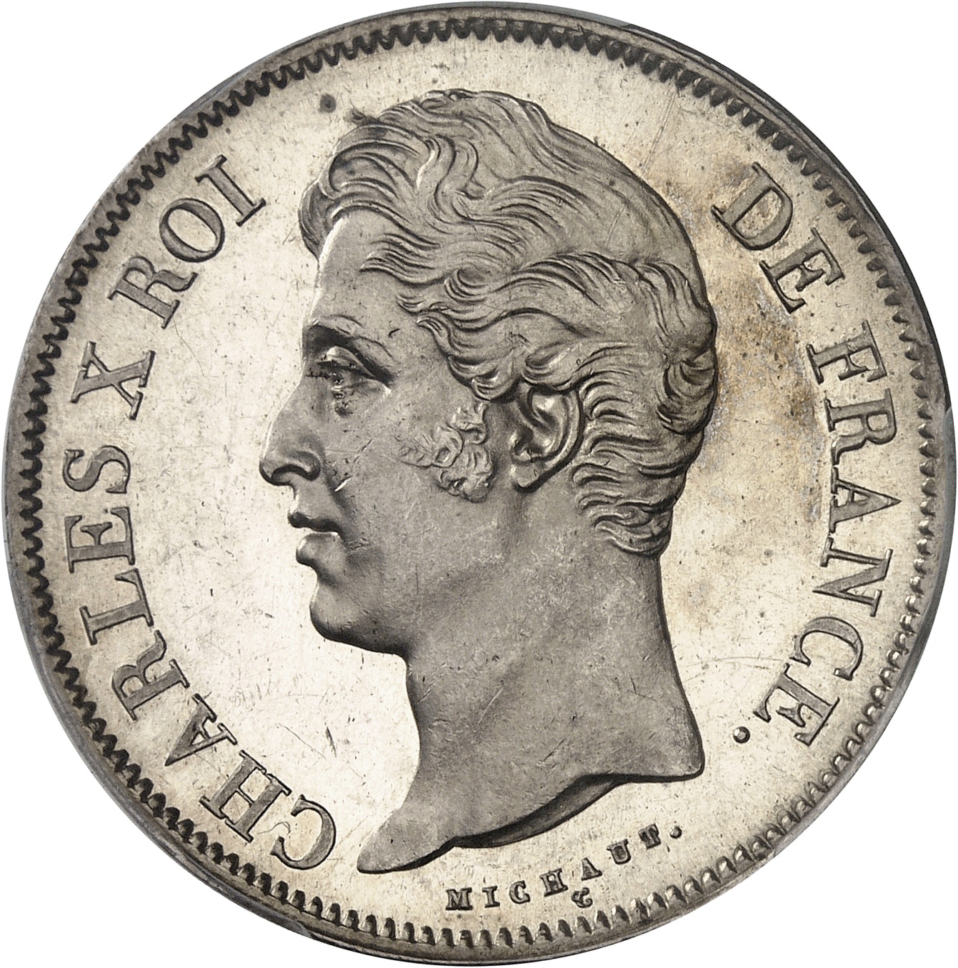 Av. CHARLES X ROI - DE FRANCE. Tête nue à gauche ; au-dessous, signature MICHAUT et T.