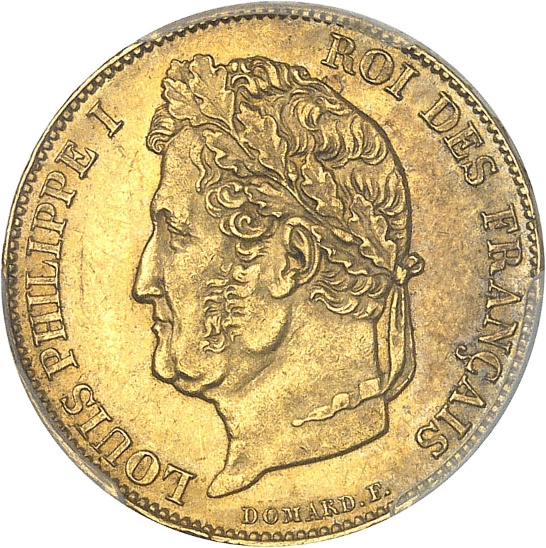 Av. LOUIS PHILIPPE I - ROI DES FRANÇAIS. Tête laurée à gauche ; au-dessous, signature DOMARD. F.