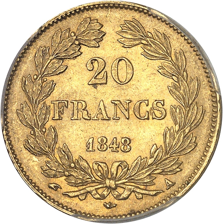 - Louis-Philippe Ier (1830-1848). 20 francs tête laurée 1848, A, Paris.