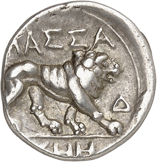 Av. ΜΑΣΣΑ. Lion à droite ; [X]HH à l’exergue et Δ devant le lion.