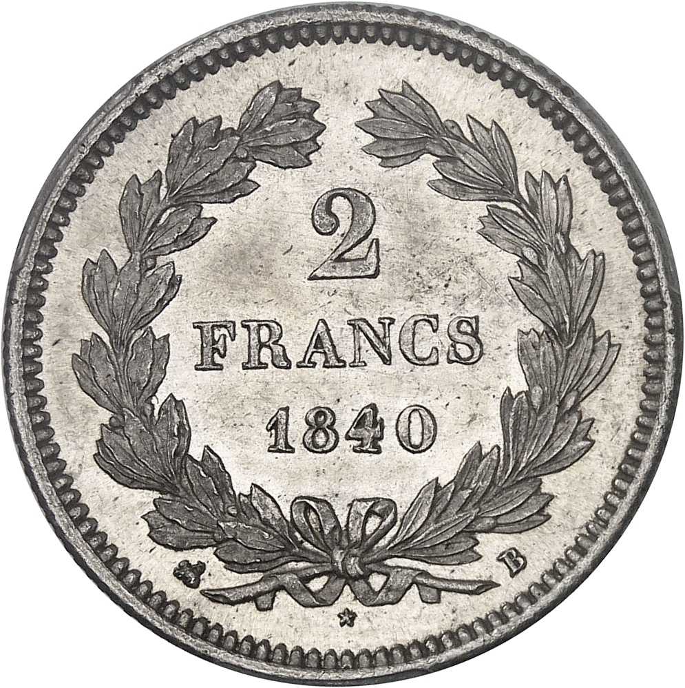 - Louis-Philippe Ier (1830-1848). 2 francs 1840, B, Rouen.