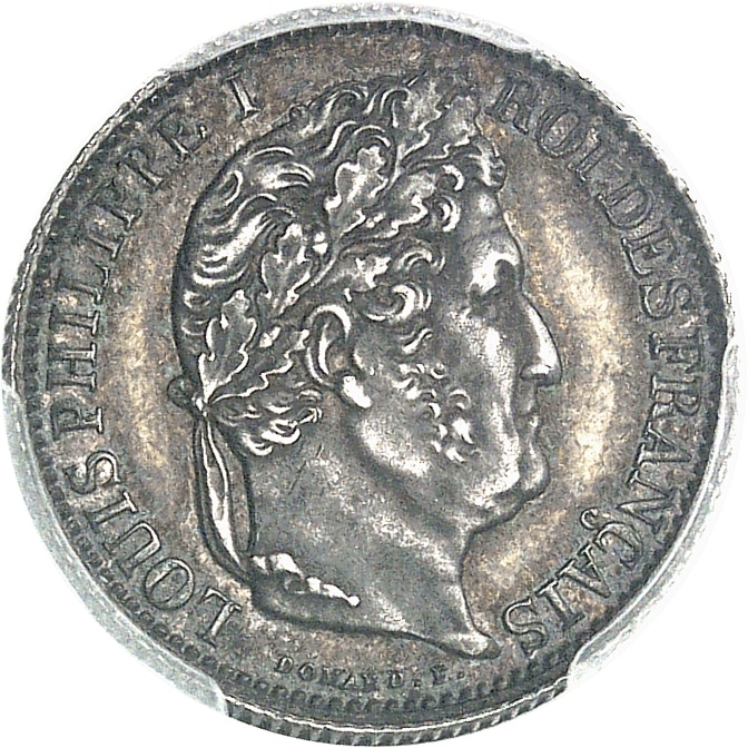 Av. LOUIS PHILIPPE I - ROI DES FRANÇAIS. Tête laurée à droite, signature DOMARD. F.