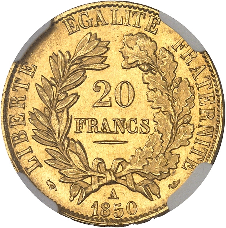 - IIe République (1848-1852). 20 francs Cérès 1850, A, Paris.