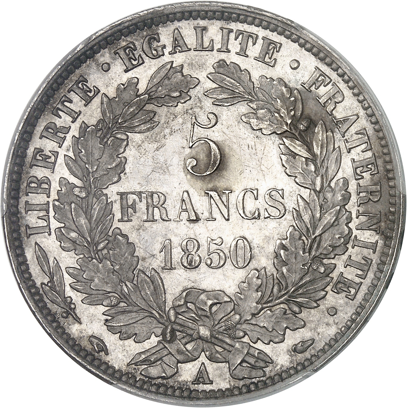 - IIe République (1848-1852). 5 francs Cérès 1850, A, Paris.