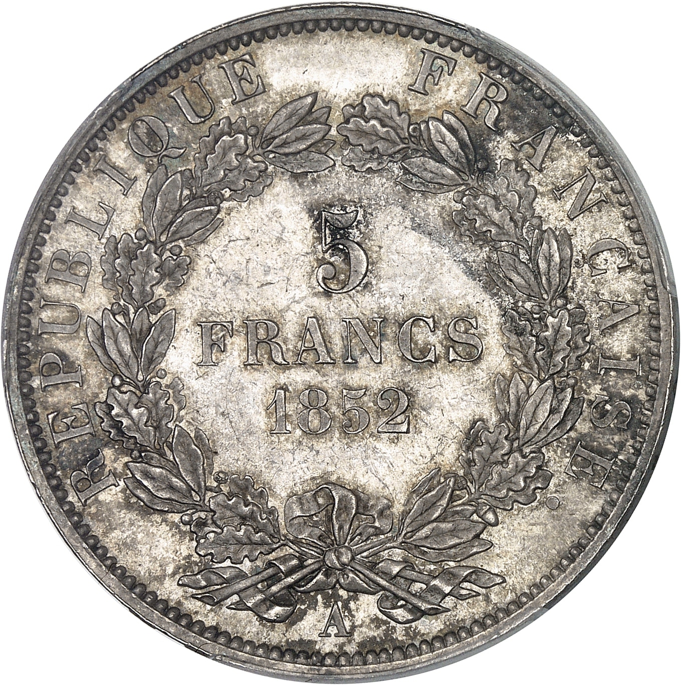 - IIe République (1848-1852). 5 francs Louis-Napoléon Bonaparte 1852, A, Paris.