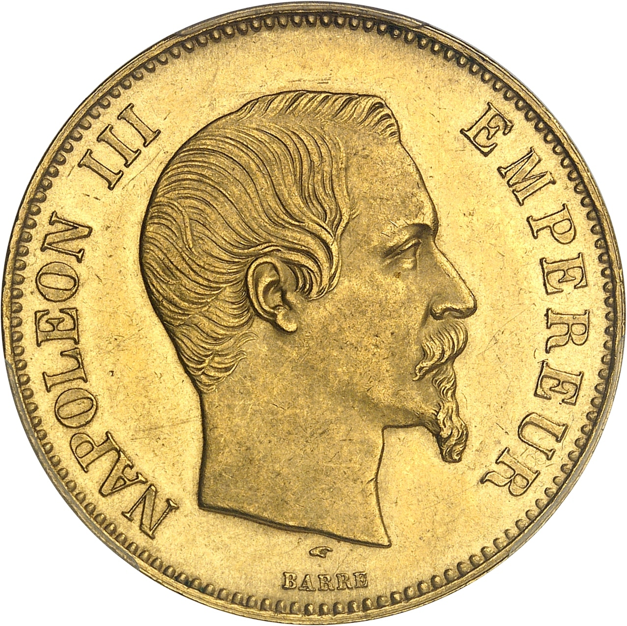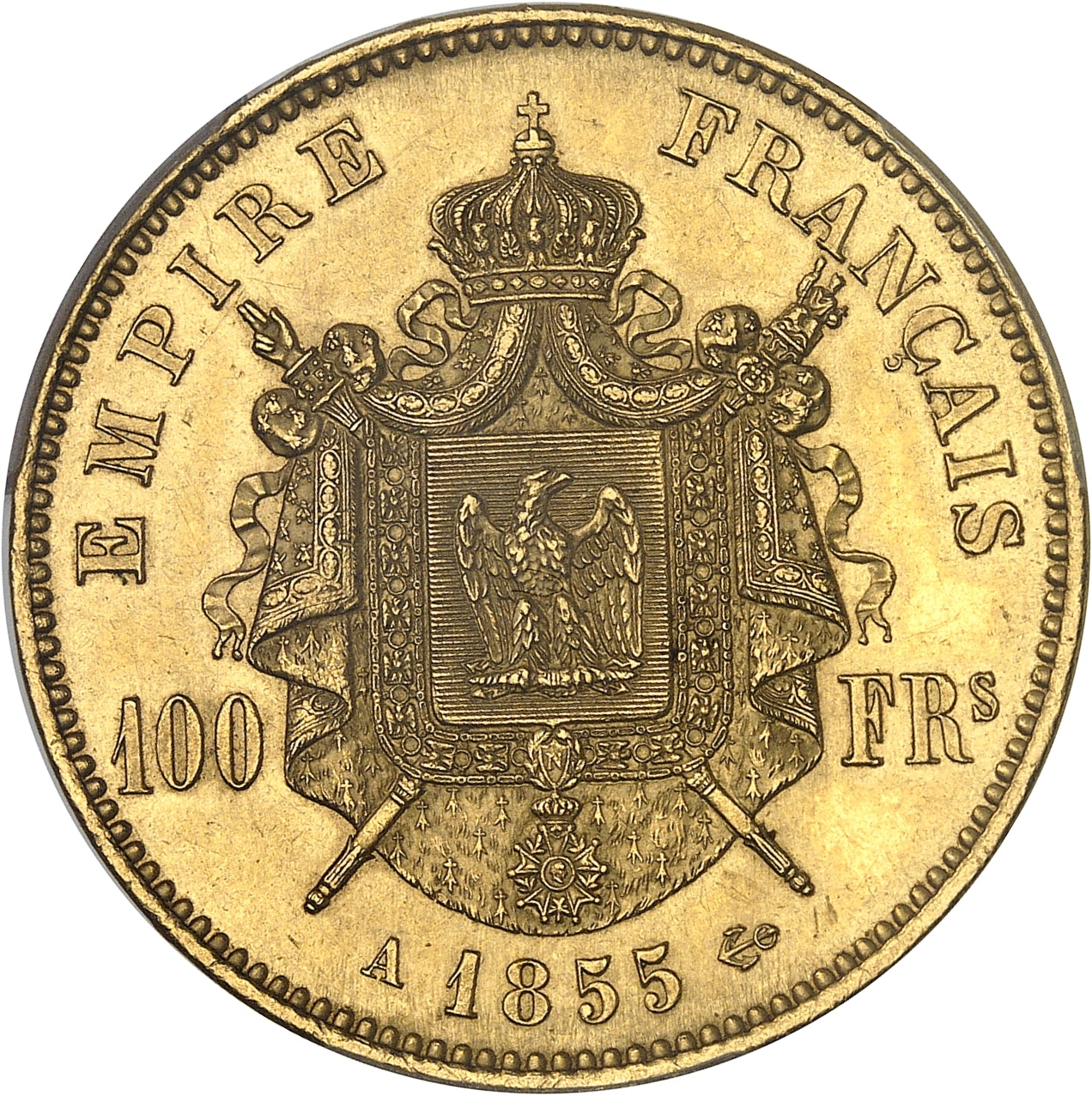 - Second Empire / Napoléon III (1852-1870). 100 francs tête nue 1855, A, Paris.
