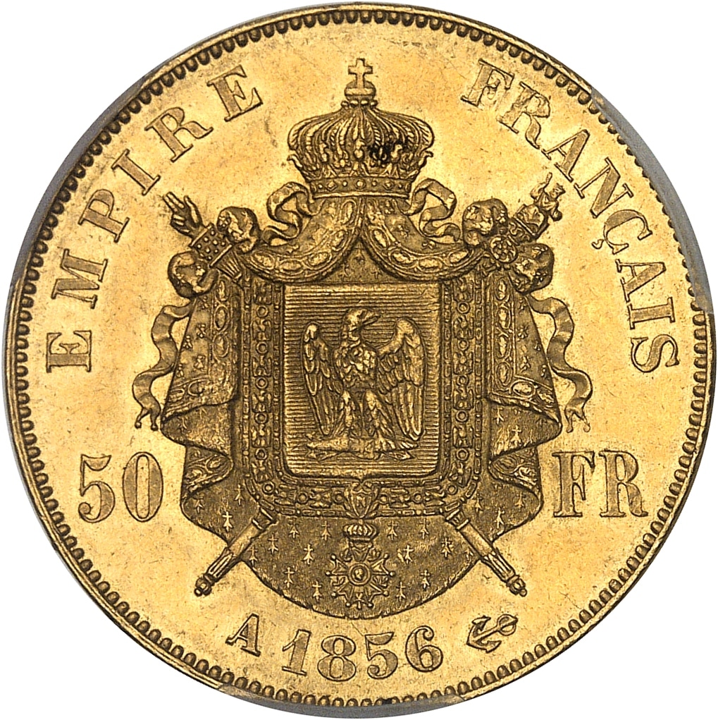 - Second Empire / Napoléon III (1852-1870). 50 francs tête nue 1856, A, Paris.