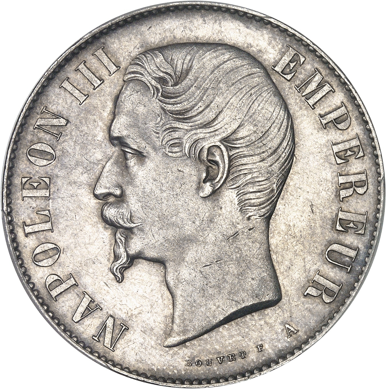 Av. NAPOLEON III EMPEREUR (atelier). Tête nue à gauche, au-dessous signature BOUVET F.
