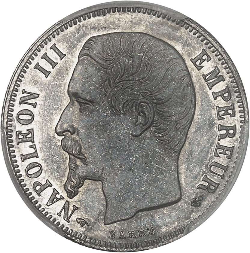 Av. (différent) NAPOLEON III - EMPEREUR (différent). Tête nue à gauche ; au-dessous, signature BARRE.