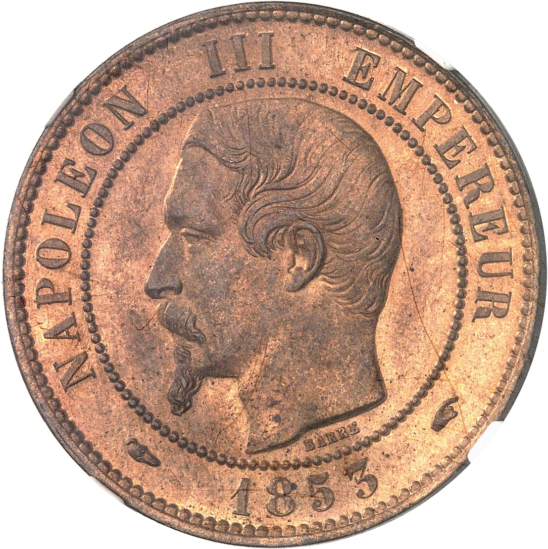 - Second Empire / Napoléon III (1852-1870). Dix centimes tête nue 1853, A, Paris.