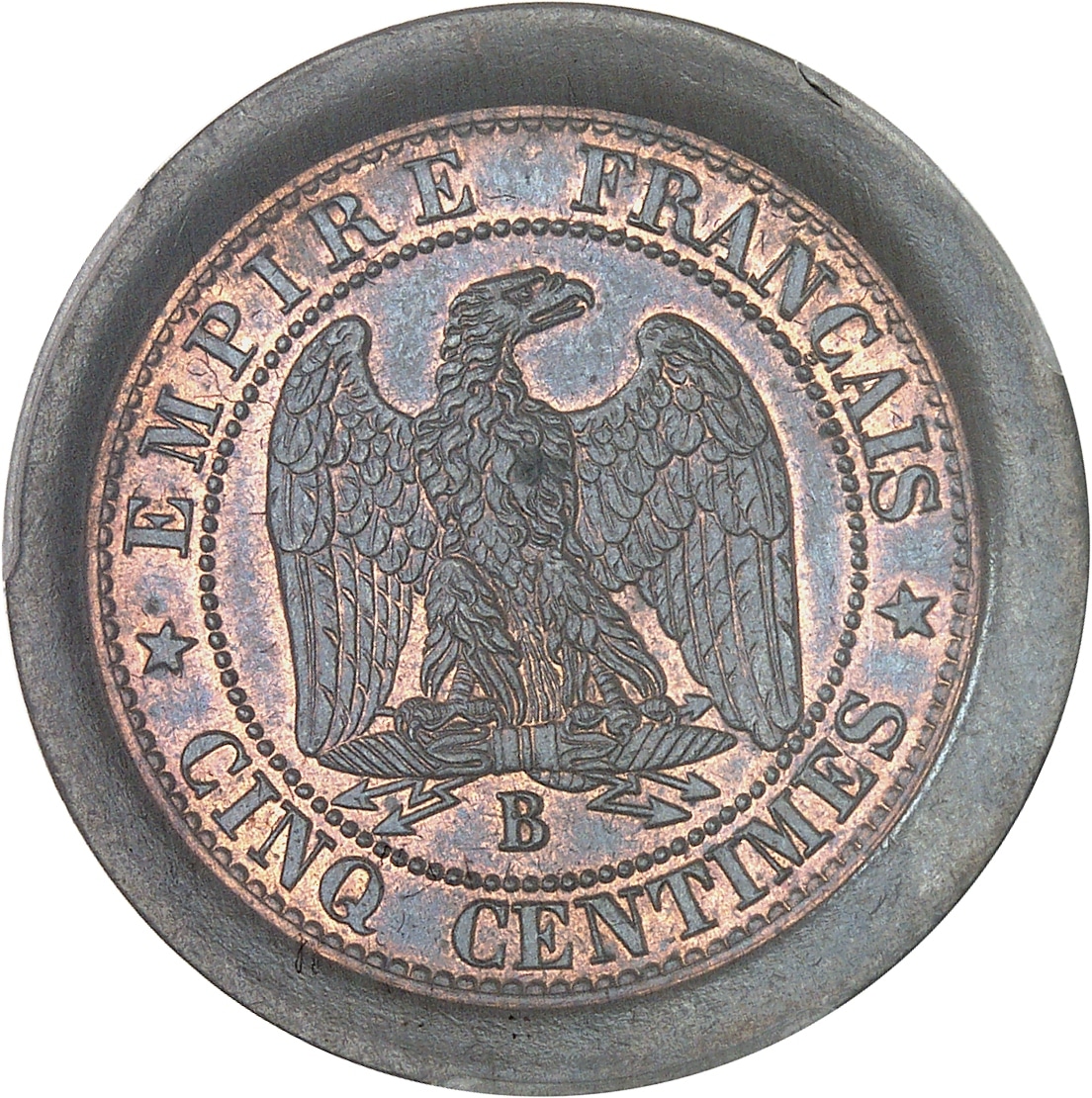 Rv. EMPIRE FRANÇAIS / * CINQ CENTIMES *. Aigle éployée, la tête à droite, sur un foudre ; au-dessous (atelier).