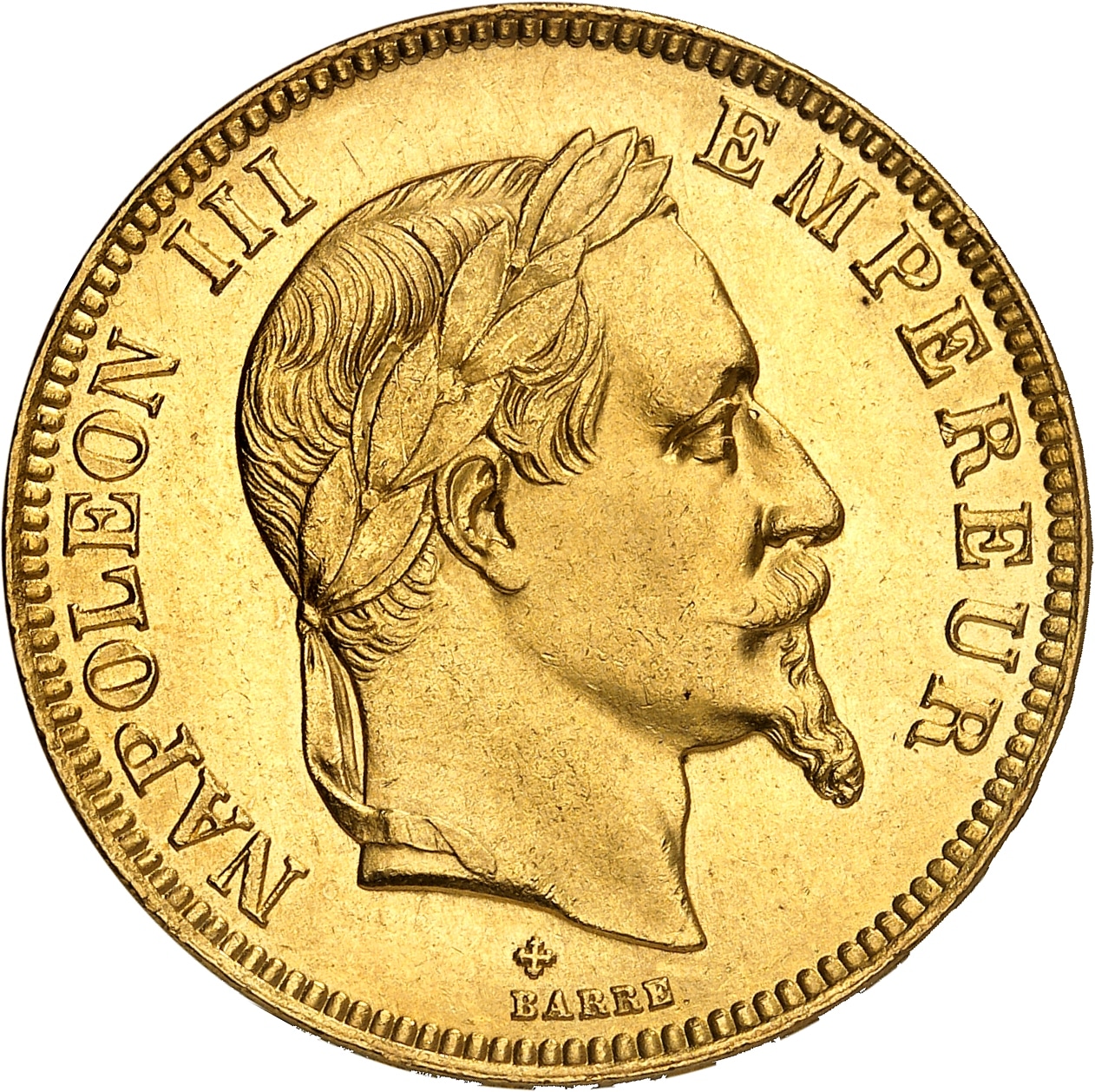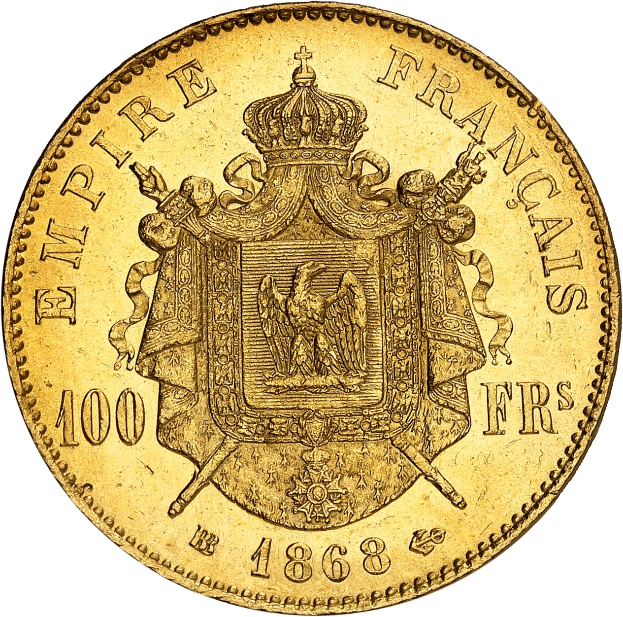 - Second Empire / Napoléon III (1852-1870). 100 francs tête laurée 1868, BB, Strasbourg.