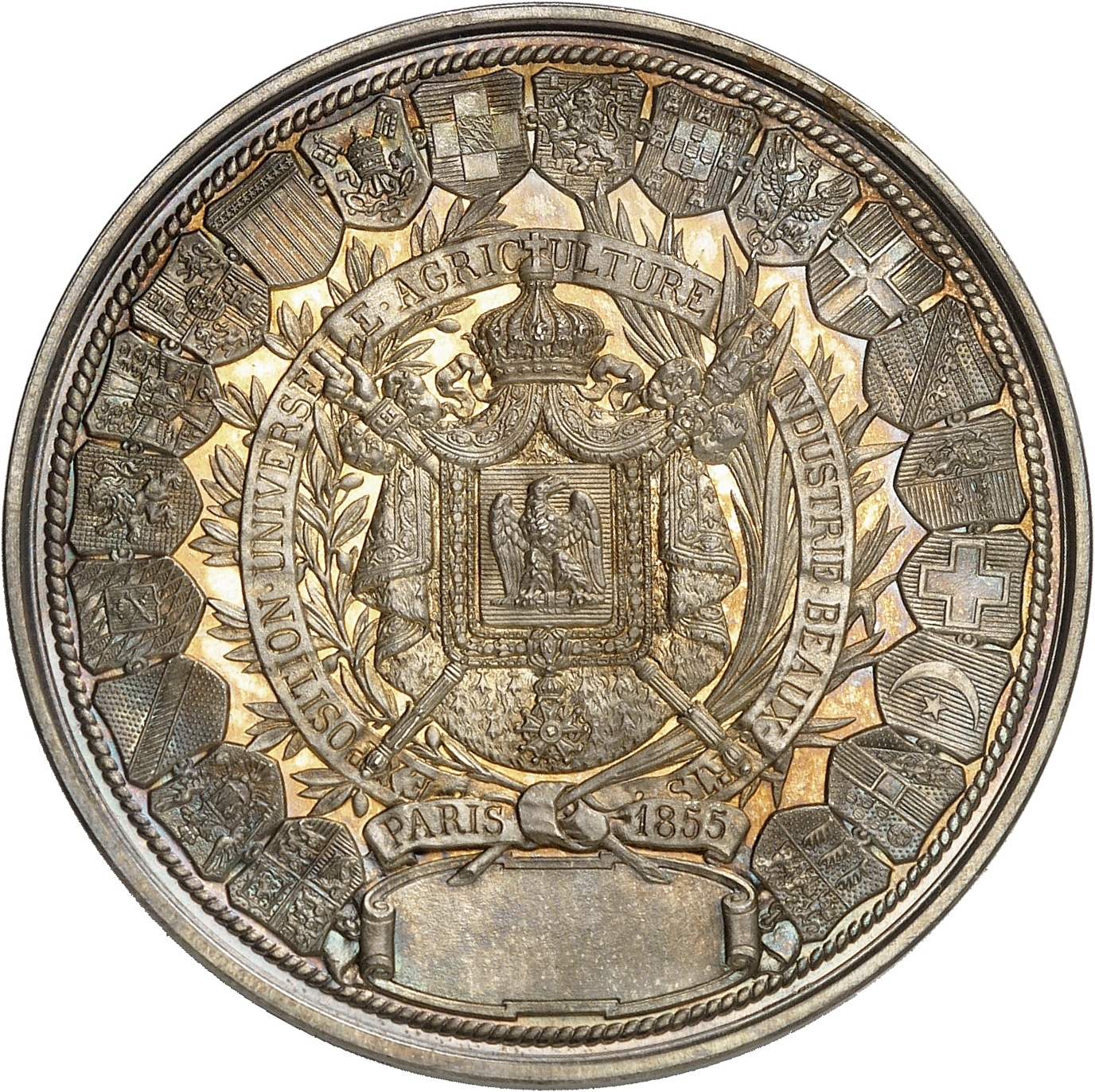 - Second Empire / Napoléon III (1852-1870). Médaille d’Argent, Exposition Universelle de Paris 1855, par A. Barre 1855, Paris.