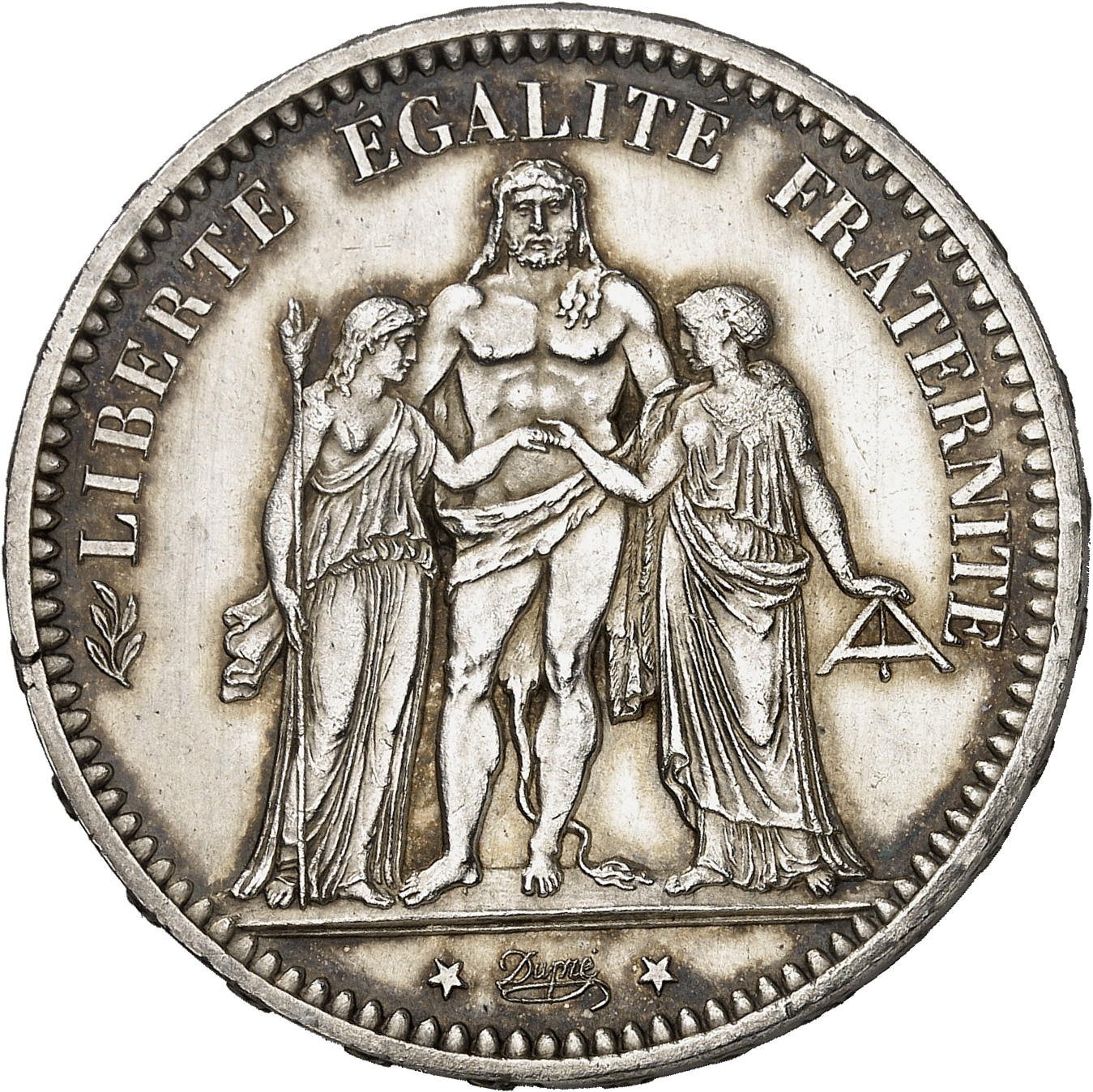 Av. LIBERTÉ ÉGALITÉ FRATERNITÉ. Hercule entre la Liberté et l’Égalité ; à l’exergue signature Dupré.