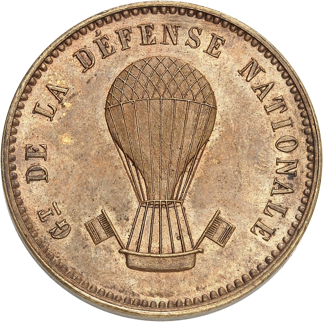 Av. Gt DE LA DÉFENSE NATIONALE. Ballon sphérique, avec deux drapeaux accrochés à la nacelle.