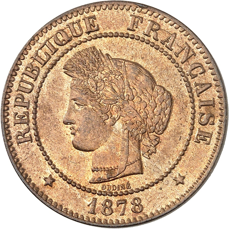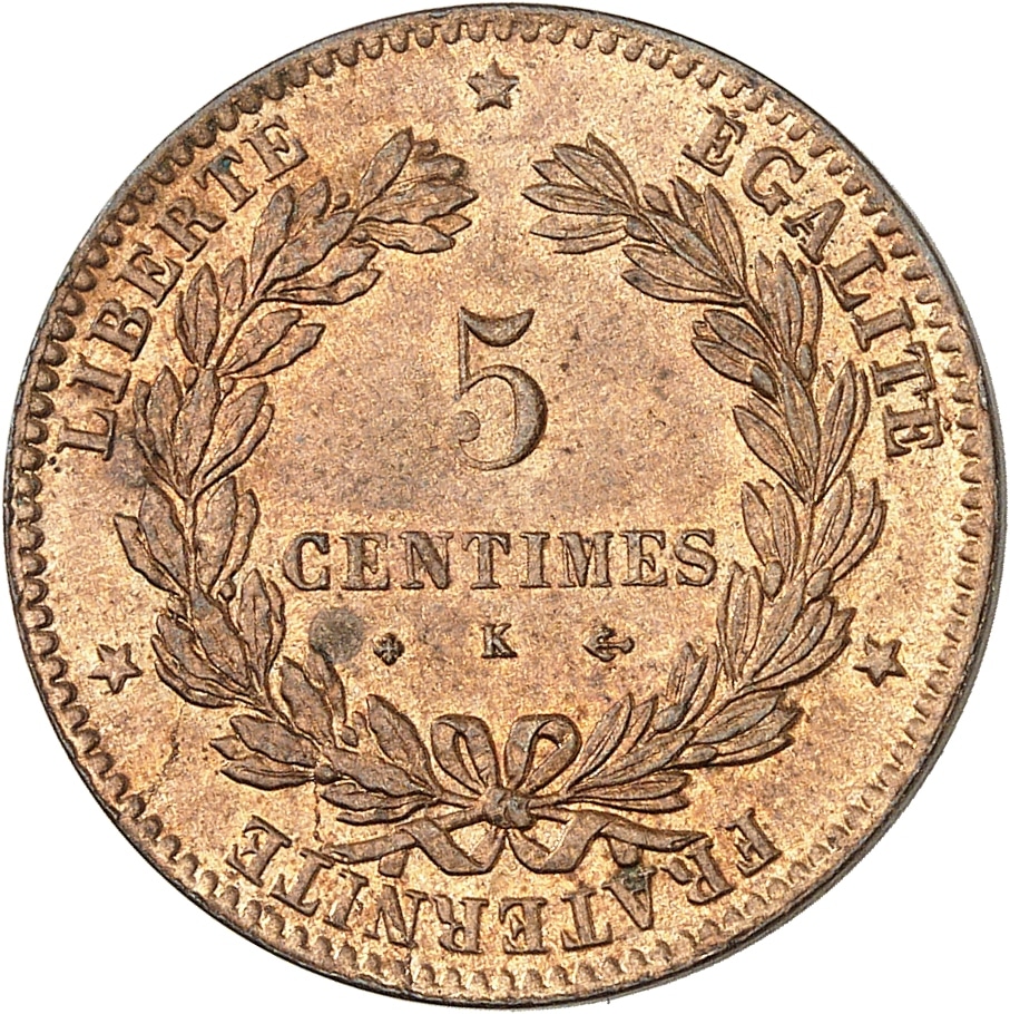 - IIIe République (1870-1940). 5 centimes Cérès 1878, K, Bordeaux.