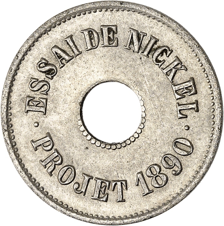 - IIIe République (1870-1940). Essai de nickel ou projet de T. Michelin, au module 2, Frappe spéciale (SP) 1890, Paris.