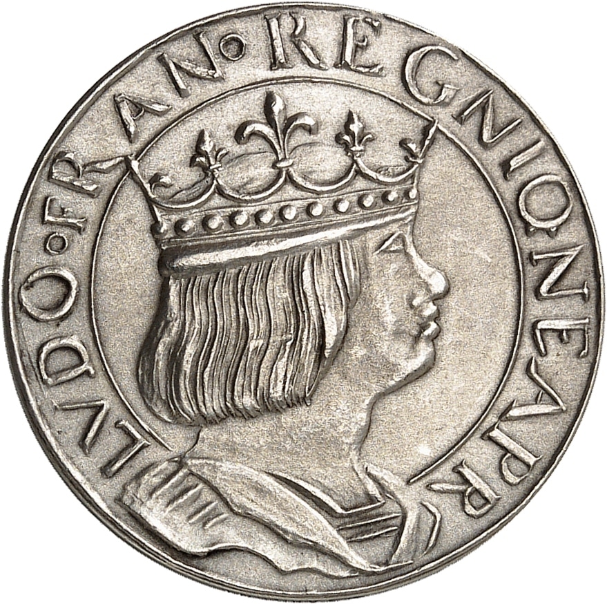 - IIIe République (1870-1940). Essai au type du ducat d'or de Louis XII, en argent, Frappe spéciale (SP) ND, frappe moderne, Paris.