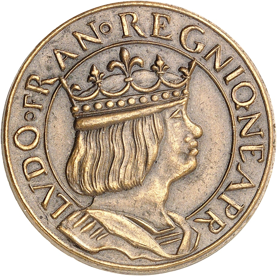 - IIIe République (1870-1940). Essai au type du ducat d'or de Louis XII, en bronze, Frappe spéciale (SP) ND, frappe moderne, Paris.