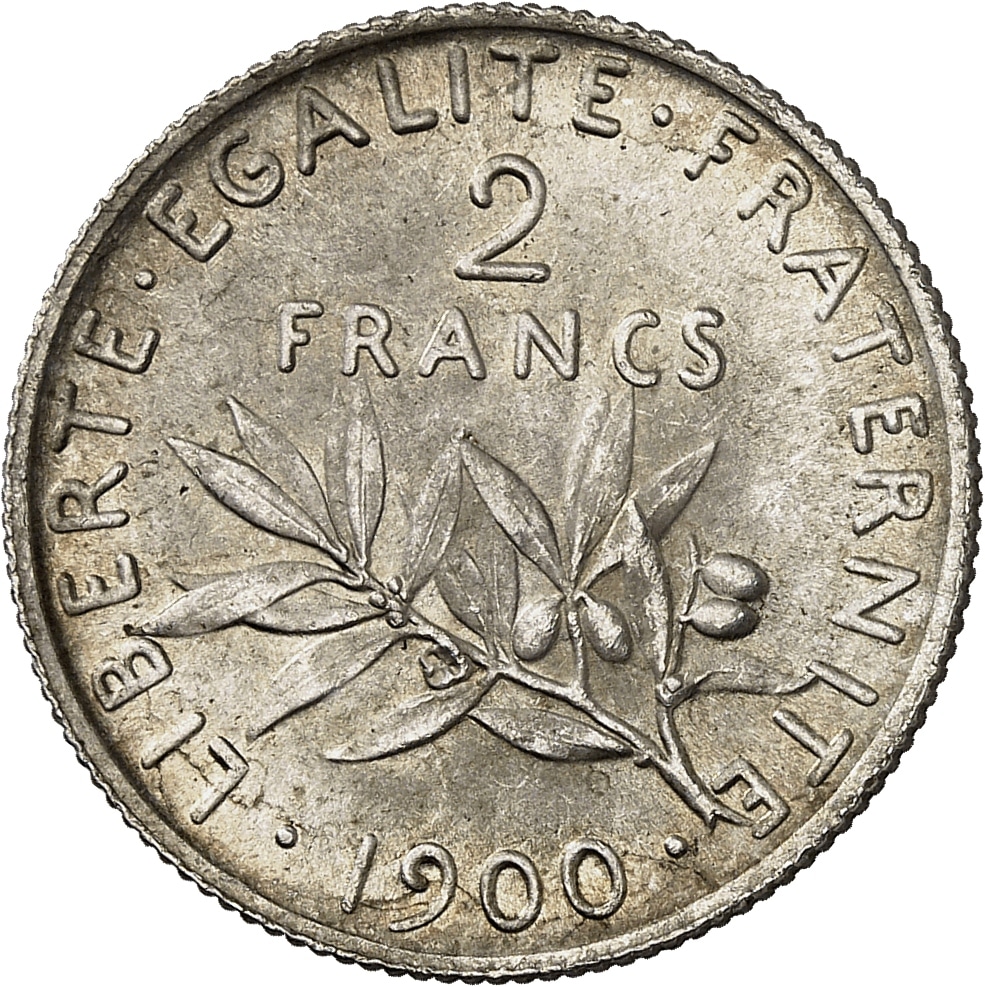 - IIIe République (1870-1940). 2 francs Semeuse 1900, Paris.