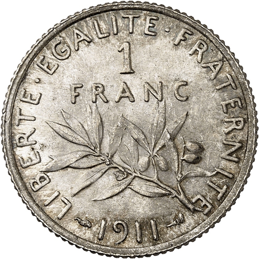 - IIIe République (1870-1940). 1 franc Semeuse 1911, Paris.
