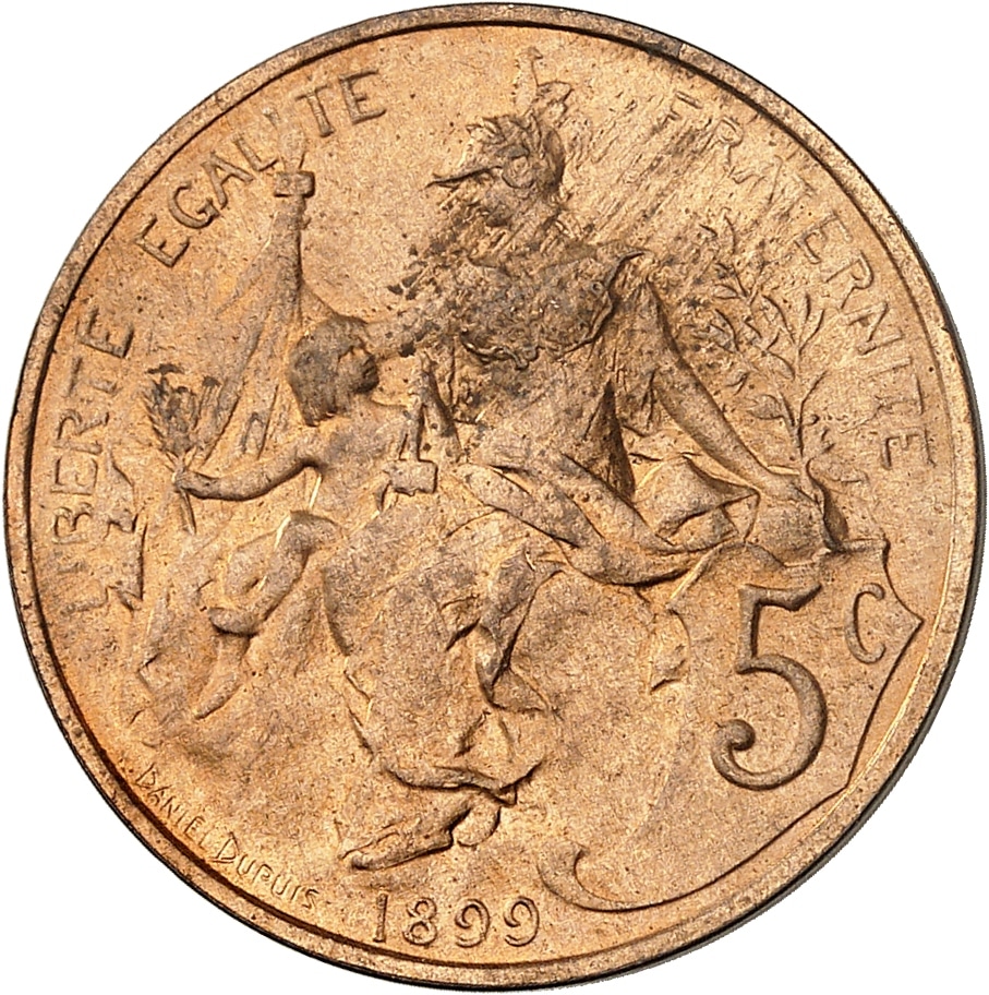 - IIIe République (1870-1940). 5 centimes Daniel-Dupuis 1899, Paris.