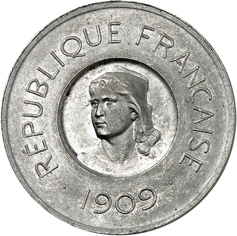 Av. REPUBLIQUE FRANÇAISE/ (date). Dans une cuvette circulaire : buste de trois-quarts face de la République à gauche.