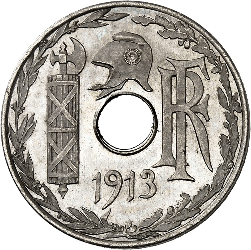 - IIIe République (1870-1940). Essai de 25 centimes, concours de 1913, 2e type, par Pillet, Frappe spéciale (SP) 1913, Paris.