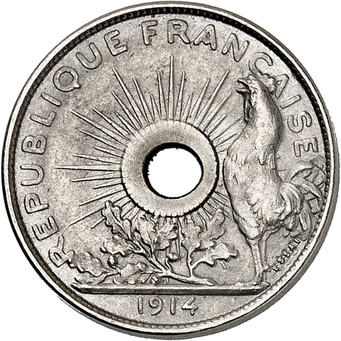 - IIIe République (1870-1940). Essai de 25 centimes, concours de 1913, 4e type, petit module, par Pillet, Frappe spéciale (SP) 1914, Paris.
