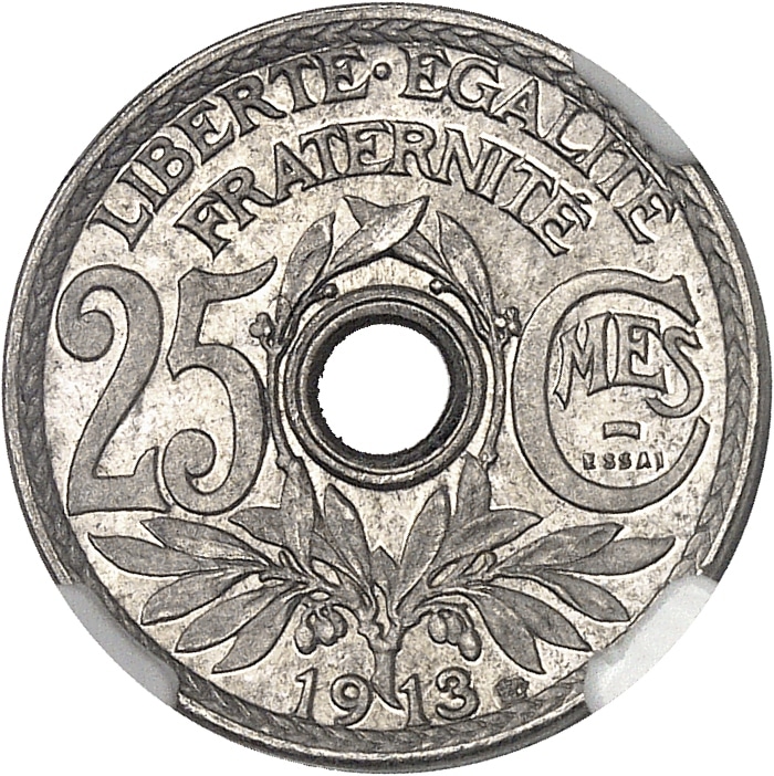 - IIIe République (1870-1940). Essai de 25 centimes, concours de Lindauer, petit module 1913, Paris.
