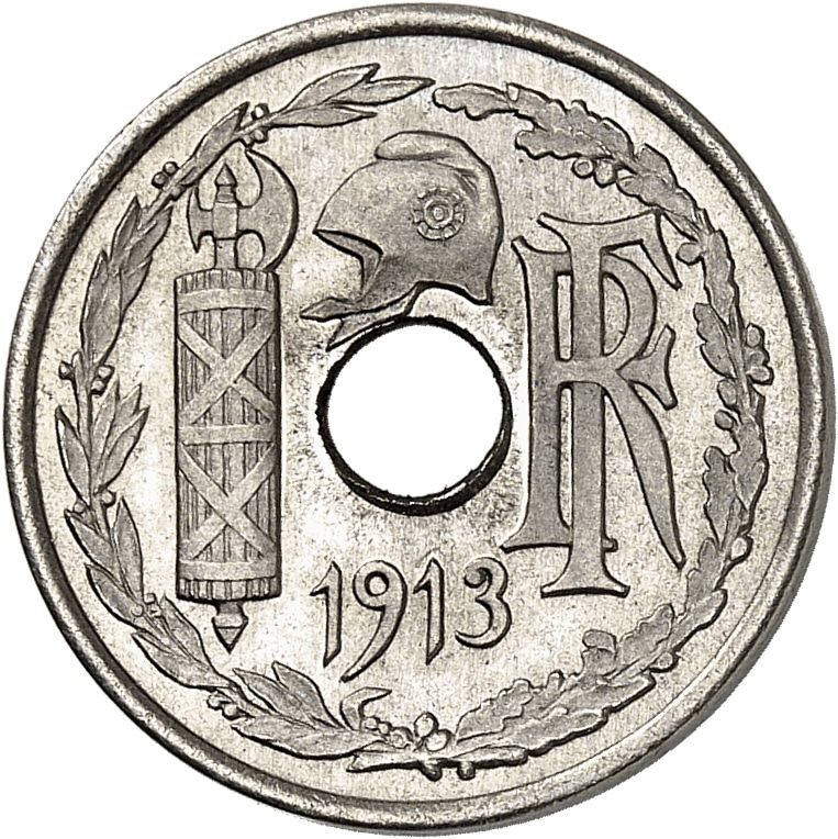 - IIIe République (1870-1940). Essai de 10 centimes, concours de 1913, 2e type, par Pillet, Frappe spéciale (SP) 1913, Paris.