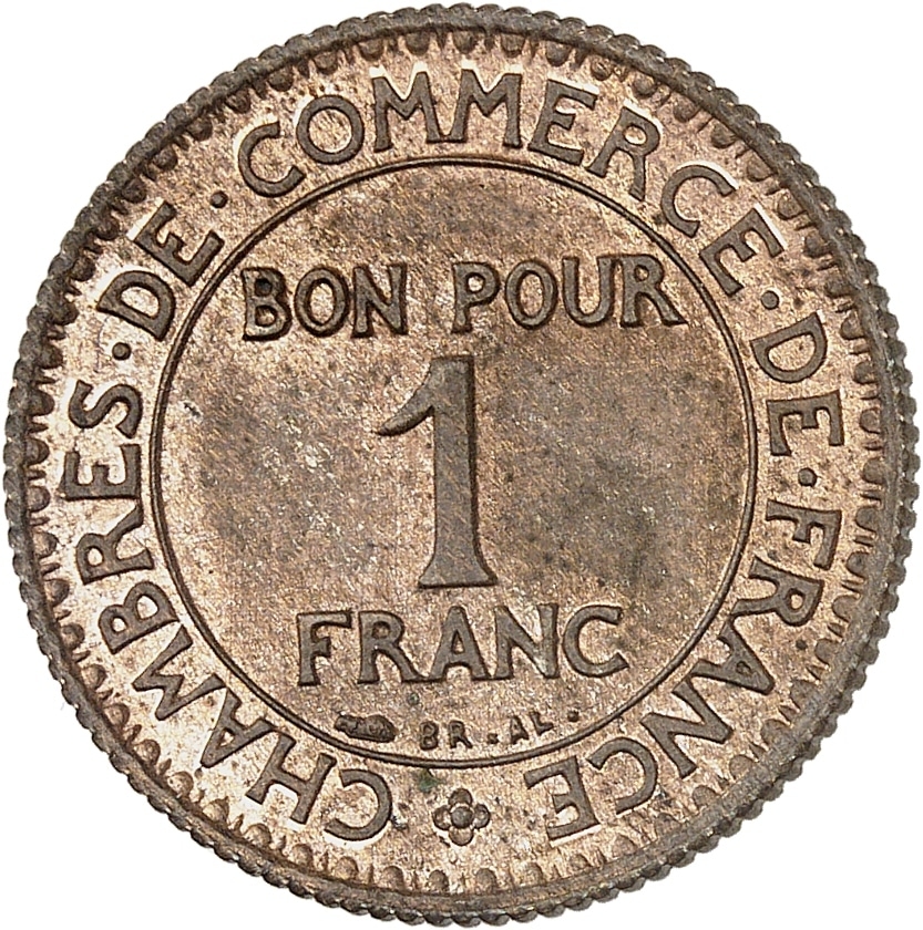 Rv. * CHAMBRES. DE. COMMERCE. DE. FRANCE. Au centre : BON POUR 1 FRANC ; au-dessous (différent) et BR. AL.