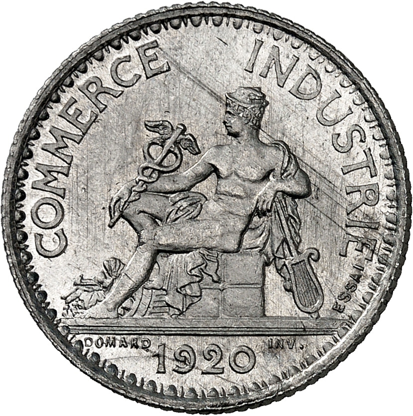 - IIIe République (1870-1940). Essai de 1 franc Chambres de commerce, en aluminium, Frappe spéciale (SP) 1920, Paris.