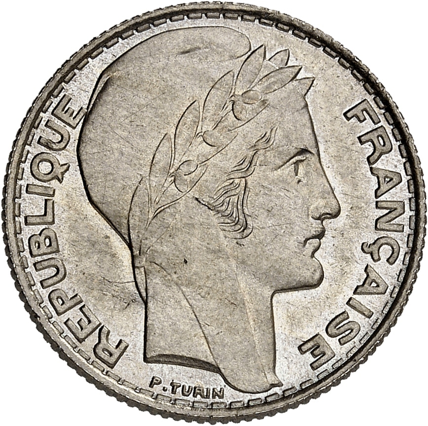 Av. REPUBLIQUE FRANÇAISE. Tête laurée de la République à droite, au-dessous signature P. TURIN.