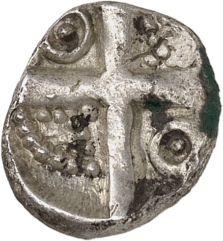 Rv. Croix formant quatre cantons : un cercle pointé au 1 et au 4, une ellipse perlée sur un point au 2 et au 3.