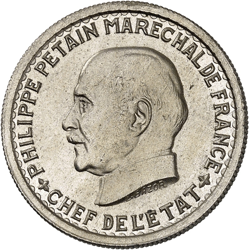 Av. PHILIPPE PETAIN MARECHAL DE FRANCE / CHEF DE L’ETAT. Tête à gauche, signature L. BAZOR.