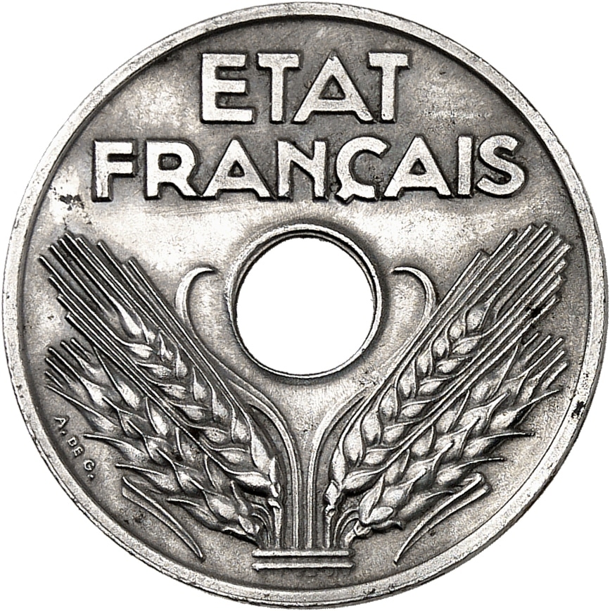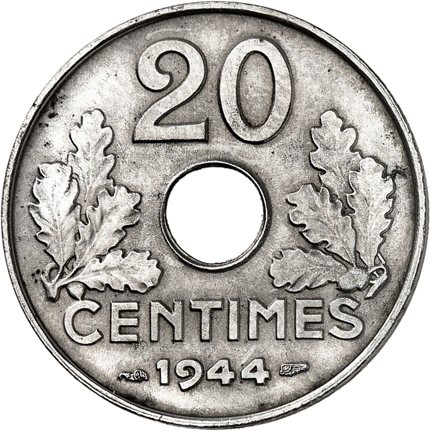 - État Français (1940-1944). 20 centimes en fer 1944, Paris.
