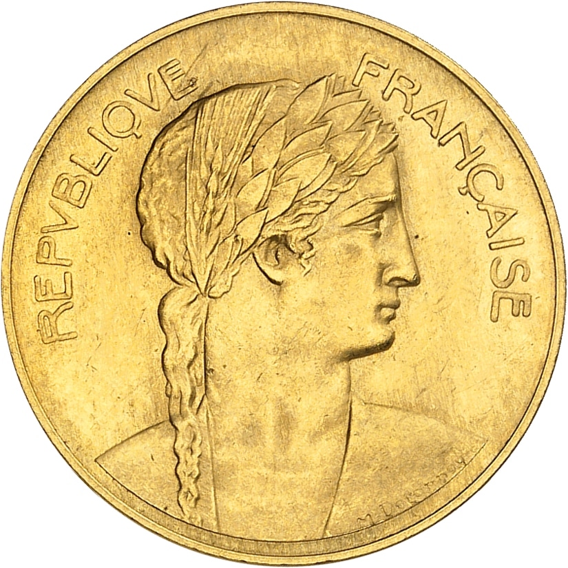 - IVe République (1947-1958). Module de 20 francs Or, visite du Président René Coty à la Monnaie, par M. Delannoy, Frappe spéciale (SP) 1955, Paris.