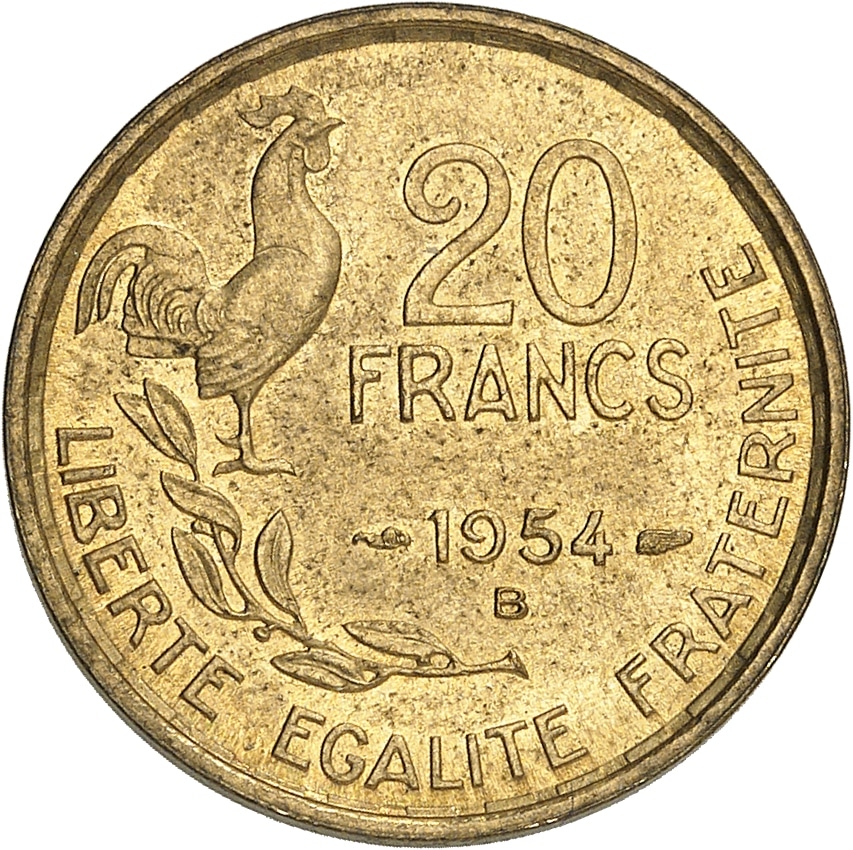 - IVe République (1947-1958). 20 francs G. Guiraud 1954, B, Beaumont-le-Roger.