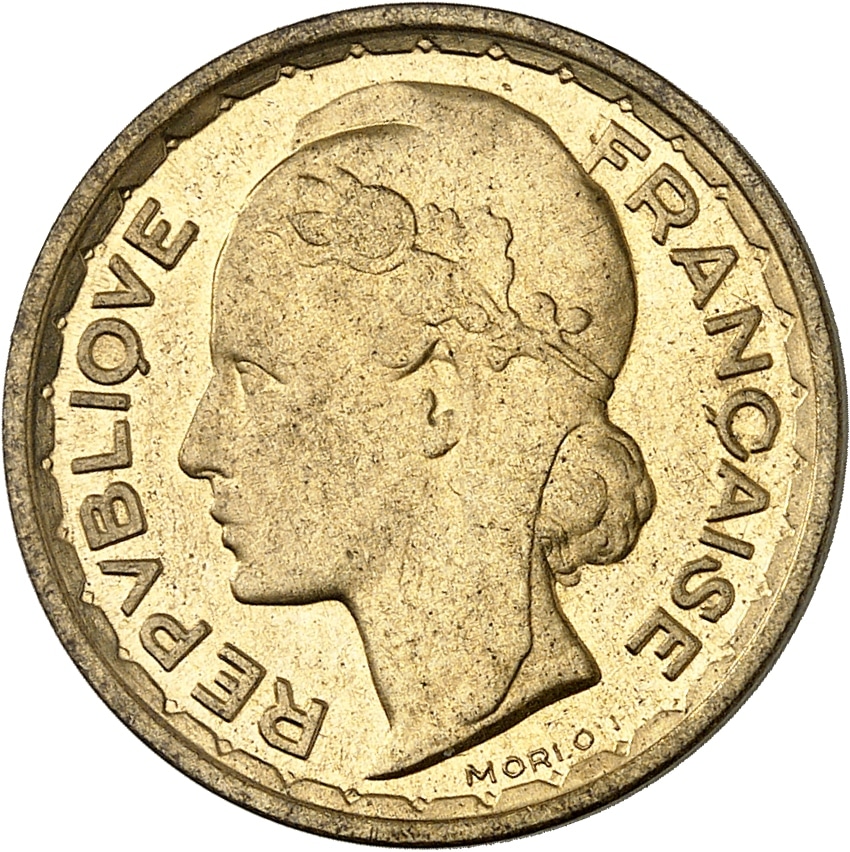 - IVe République (1947-1958). Présérie de 20 francs (sans ESSAI), concours de 1950, par A. Morlon, Frappe spéciale (SP) 1950, Paris.