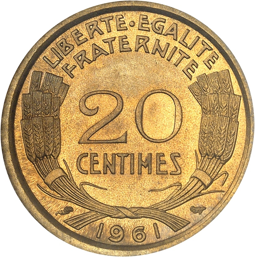 - Ve République (1958 à nos jours). Présérie de 20 centimes, concours de 1961, par R. Cochet 1961, Paris.