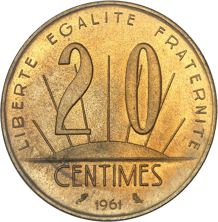 - Ve République (1958 à nos jours). Présérie de 20 centimes, concours de 1961, par É. Rousseau 1961, Paris.