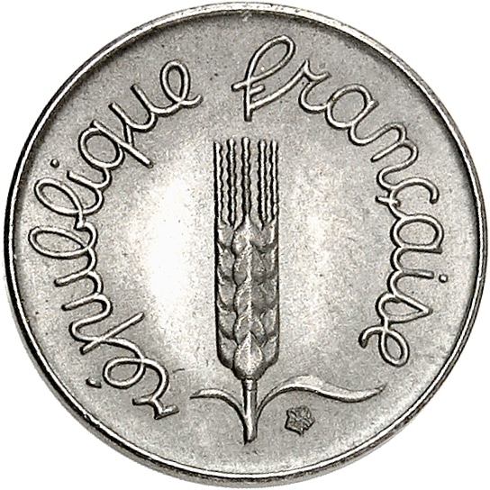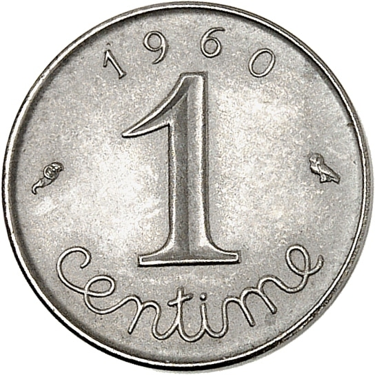 - Ve République (1958 à nos jours). Présérie de 1 centime Épi sur flan mat, Frappe spéciale (SP) 1960, Paris.