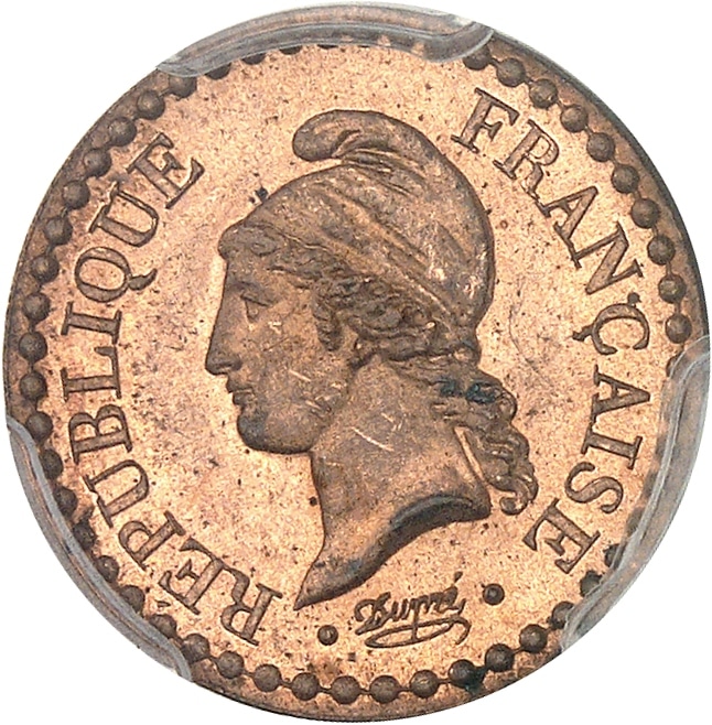 Av. REPUBLIQUE FRANÇAISE. Buste de la République à gauche, coiffée d’un bonnet de la liberté ; au-dessous signature cursive Dupré.