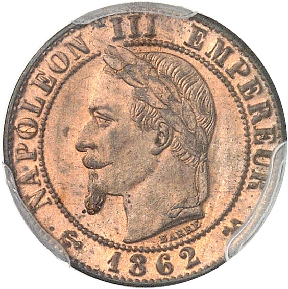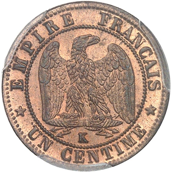 - Second Empire / Napoléon III (1852-1870). Un centime, tête laurée 1862, K, Bordeaux.