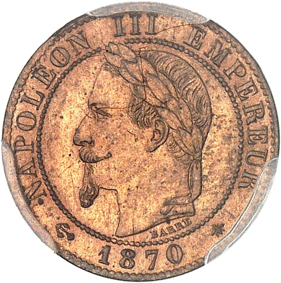 - Second Empire / Napoléon III (1852-1870). Un centime, tête laurée 1870, A, Paris.